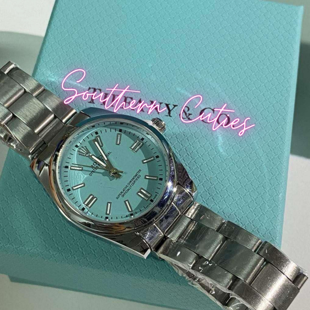 Silver Blue Face R watch with box